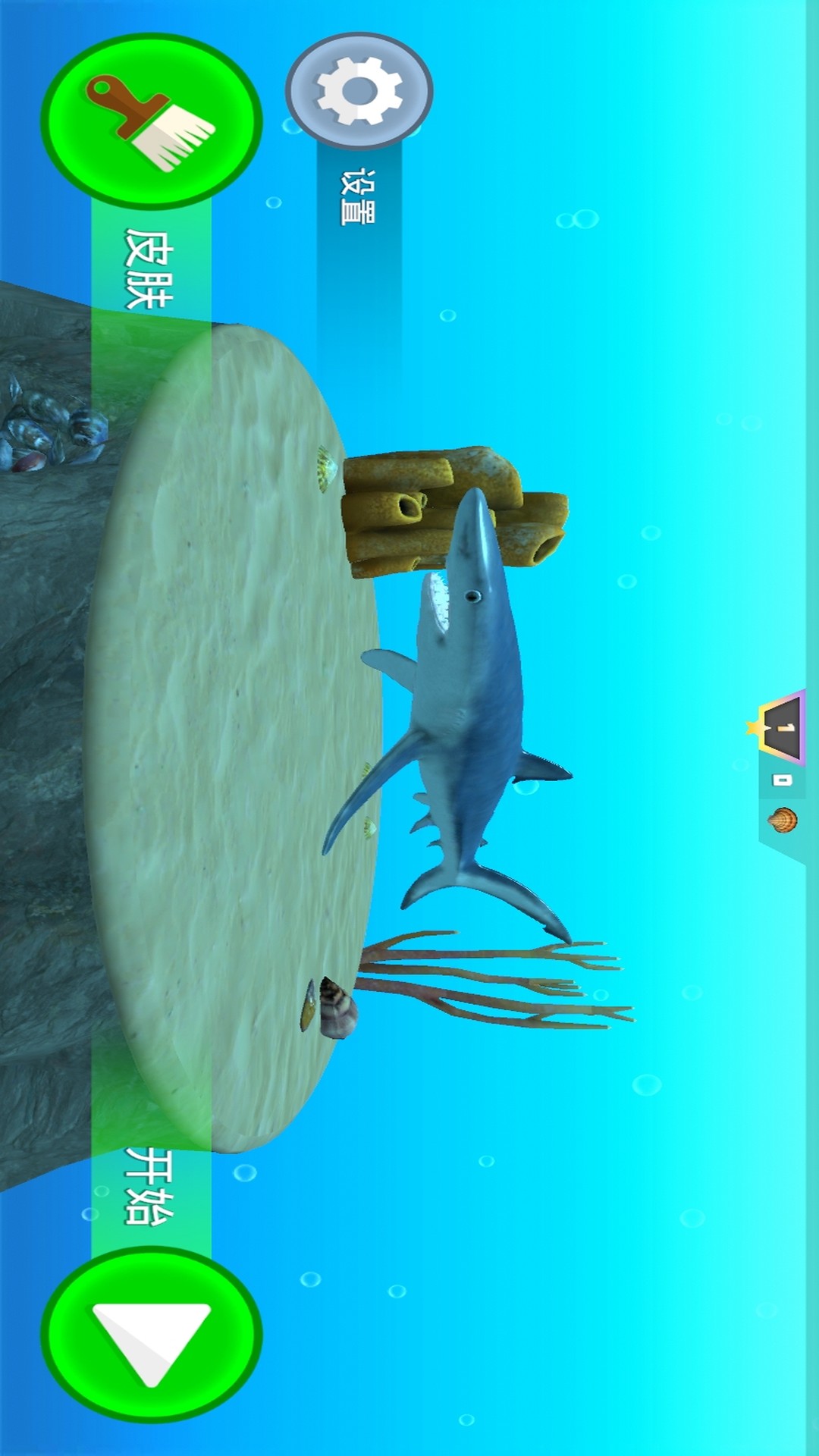 3、视角跟随切换。镜头会跟着鲨鱼走,视野比较开阔。小编觉得,这样方便观察周围的情况,不容易被偷袭。画面转动,也很顺滑。