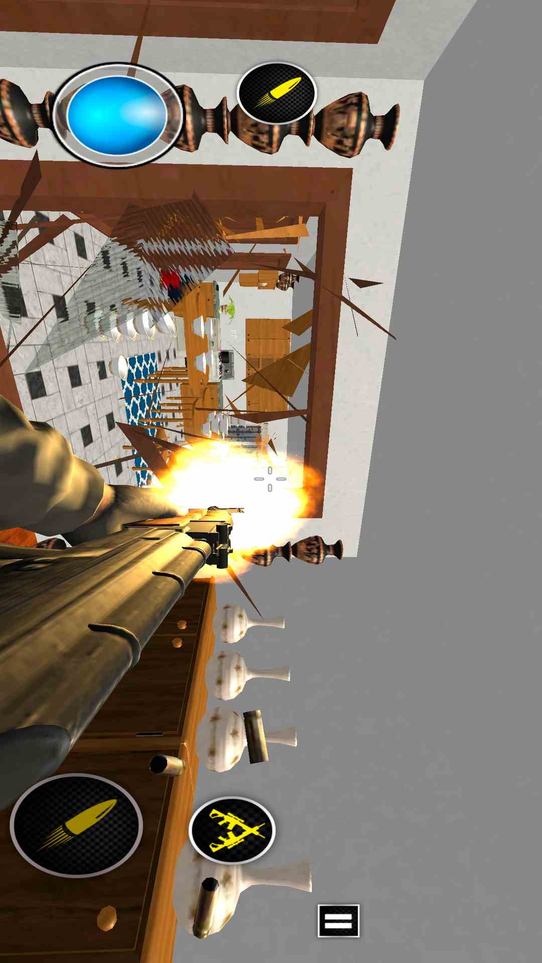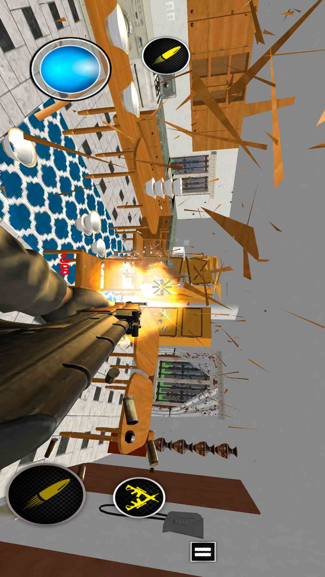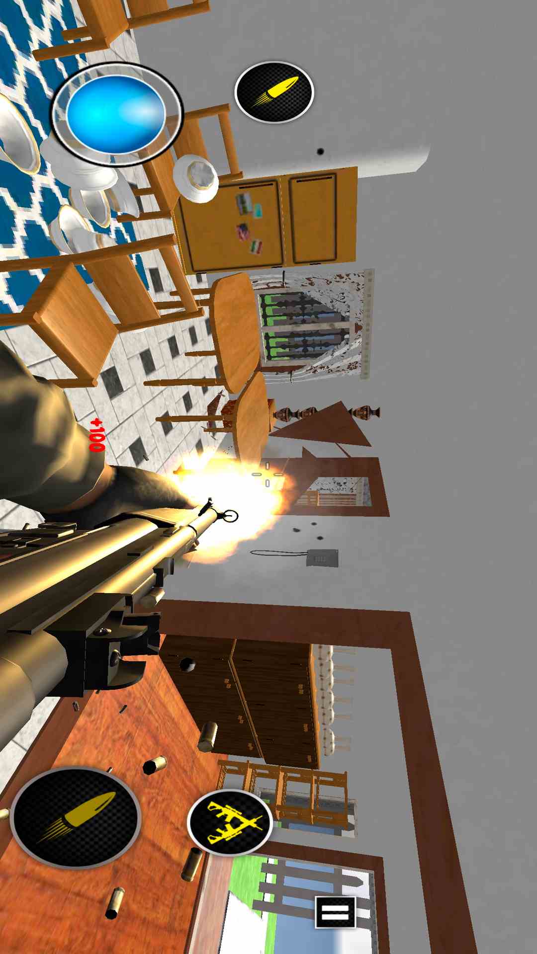 2. 场景互动元素到处都是。屋子里的家具都能成为目标,玩家想打哪里就打哪里。电视沙发瓶子都能碎,这种自由度很高。