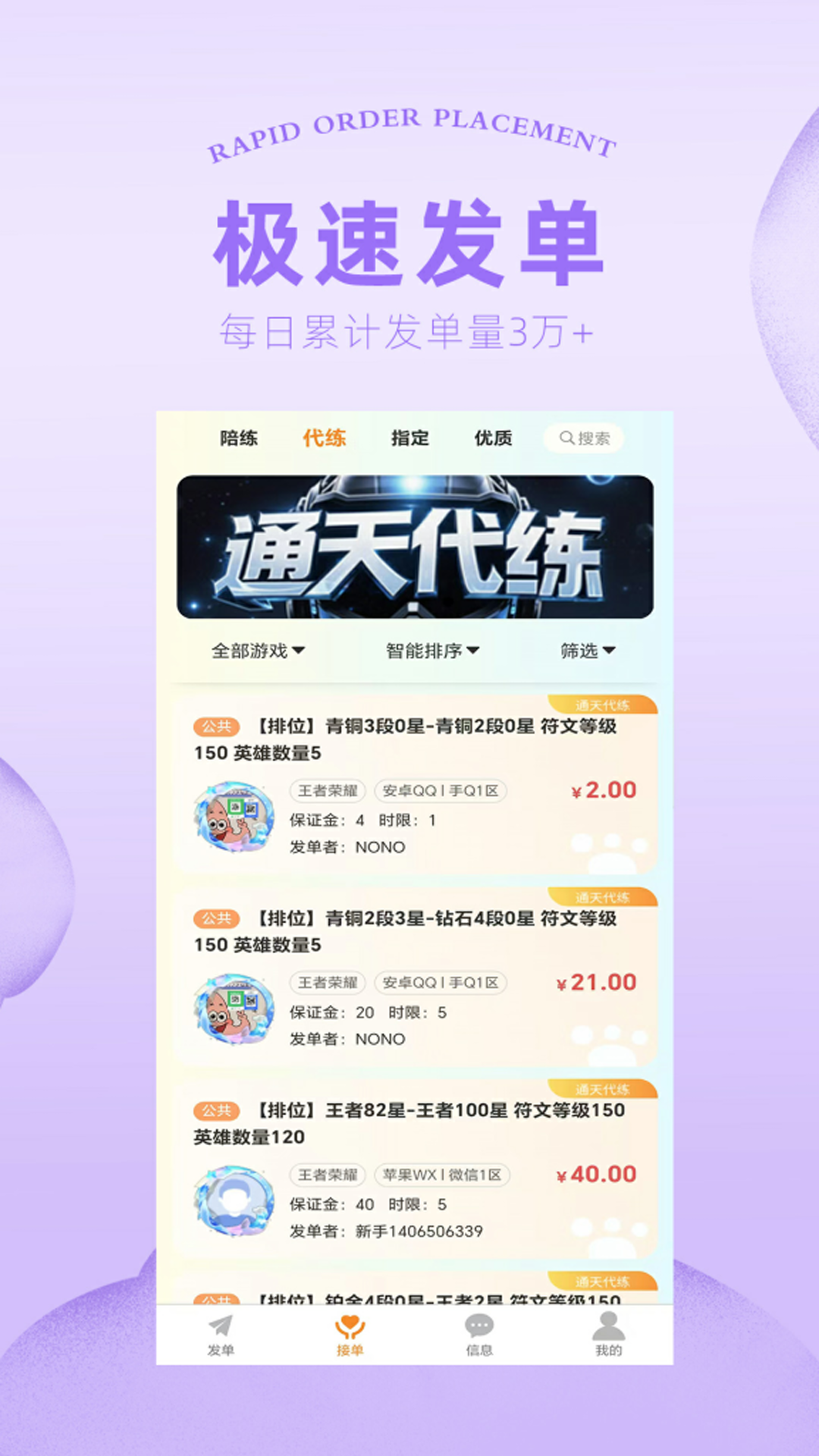 通天代练的核心优势在于其庞大的专业代练师团队。平台严格筛选每一位入驻代练,通过实名认证、技术测评、历史战绩审核等多重机制,确保代练人员具备真实高水平的游戏实力。每位代练均拥有清晰的擅长游戏、段位区间、服务类型及用户评价记录,系统可根据你的需求智能推荐最合适的代练人选。无论是从青铜冲王者,还是挑战巅峰赛高分段,都能找到对应层级的专业选手为你代劳。你不再需要四处寻找“野代”,通天代练帮你一键对接真正靠谱的大神。