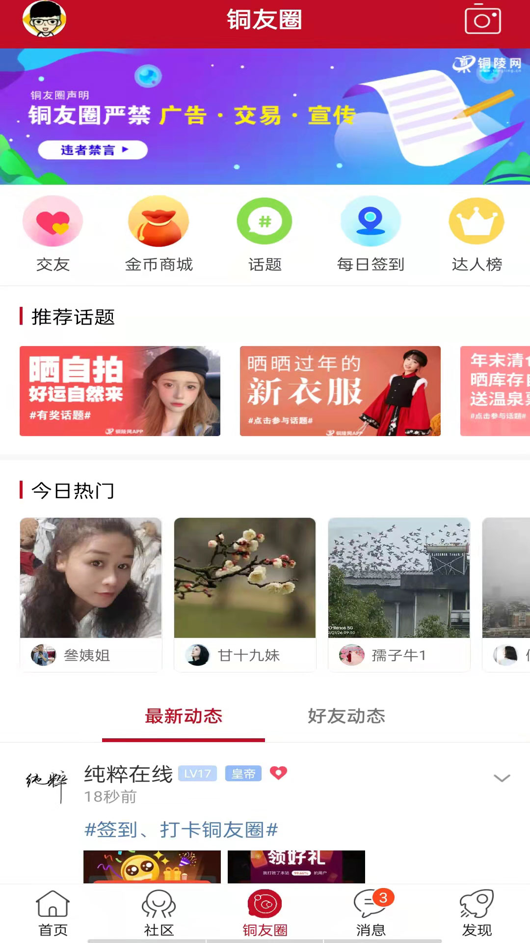 如果你是土生土长的铜陵人,想随时了解家乡变化、找到志同道合的伙伴、解决日常实际问题;如果你是新落户的建设者,希望快速融入城市节奏、获取靠谱生活指南、结识身边邻居;又或者你只是牵挂铜陵的游子,想透过屏幕看看天井湖的波光、听听熟悉的枞阳腔调——那么,铜陵网APP就是为你而生。现在前往各大应用商店搜索铜陵网,下载安装,开启属于你的铜陵生活新方式。